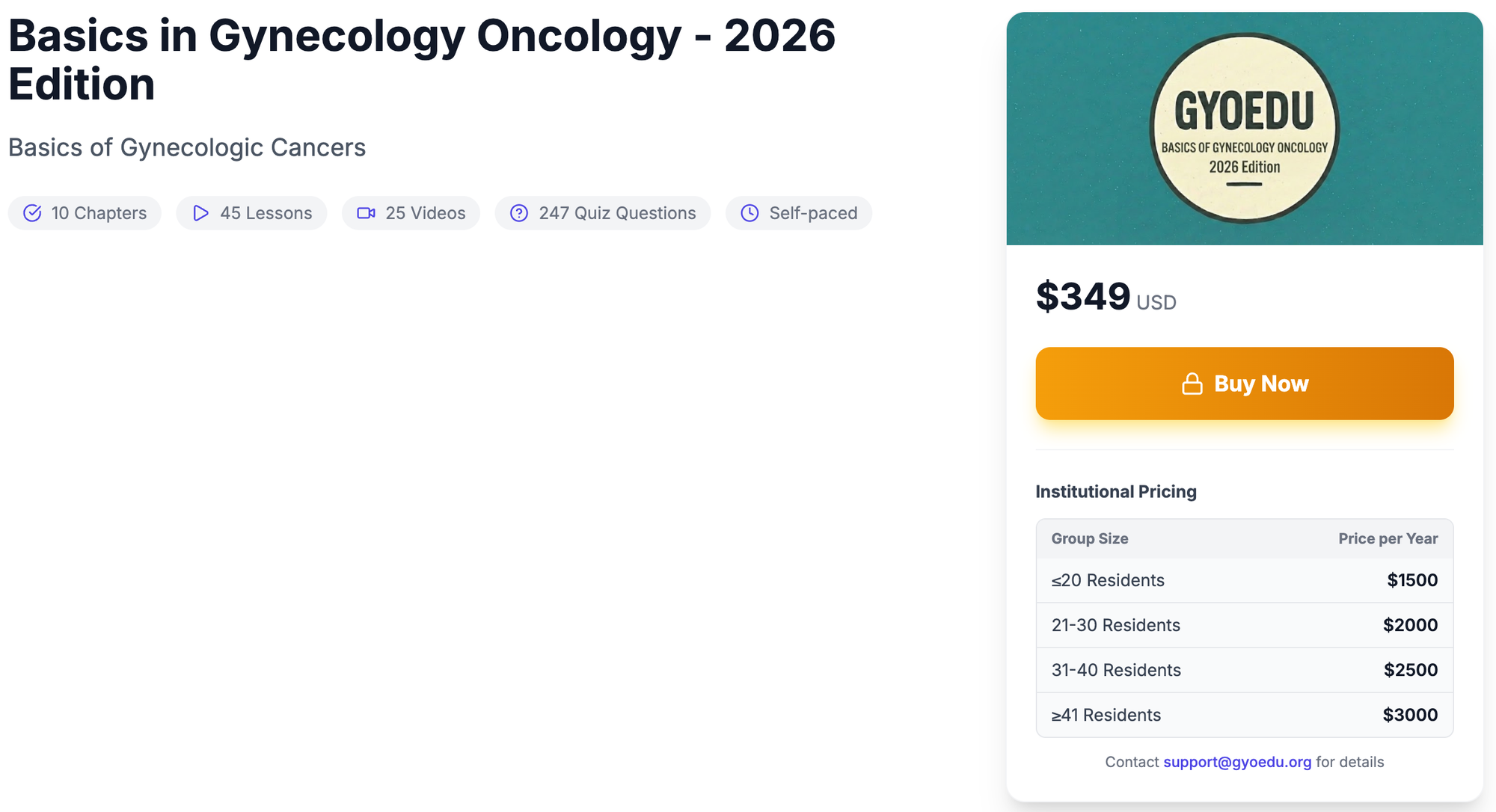 GYOEDU Resident is a course available available at https://courses.gyoedu.org for a one-time fee of $349 for residents